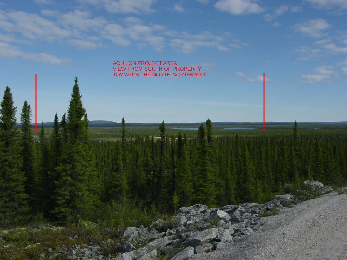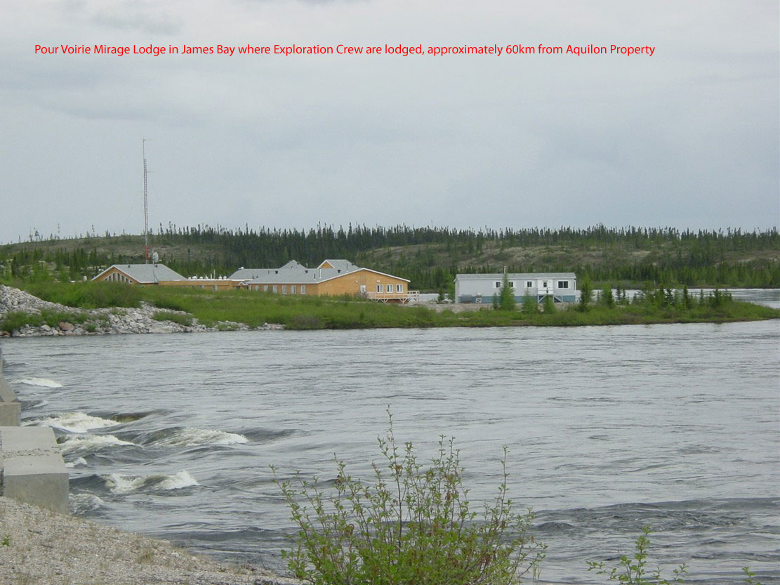The Aquilon Gold Property covering 6,370 hectares or 63.7 square kilometers of a folded low-dipping greenstone belt hosting a felsic volcanic center with auriferous mineralization, is located 10km south of the Laforge 1 hydro-electrical complex in James Bay, Quebec. The area, which is readily accessible by road, is about 400 km east of Radisson and the property itself is crossed by a secondary gravel road which provides access to the LA-1 Complex. The property can be worked on a year round basis.