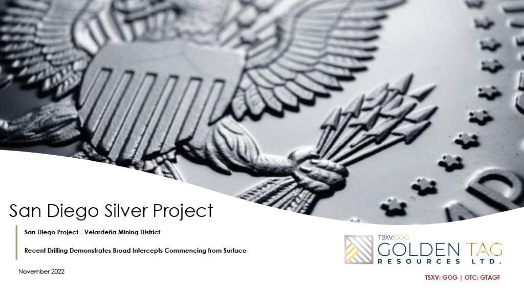Presentations INVESTORS Stock Information Fact sheet Presentations > Media Financial Statements ESG Subscribe Golden Tag - Silver ProjectSignificant silver and zinc resources in the prolific Velardeña Mining District in Mexico One of the largest undeveloped silver resources in Mexico Potentially expandable in a number of areas Fully permitted to resume exploration drilling. November 2022 DOWNLOAD