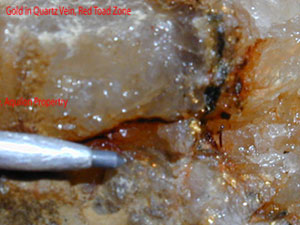 In September 2004, Golden Tag conducted a first phase exploration program of diamond drilling and mechanical surface stripping on the Red Toad Zone approximately 500 meters east of the historical. This was in response to the favourable results obtained in the initial evaluation. Drill results from this program consisting of 11 BTW core holes totaling 954 meters. Best intersection returned 10.03 g/t Au over 4.33 metres (AQ-04-03) (see Golden Tag's news release of November 9, 2004).