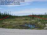 All reported assay values are uncut and true widths are estimated to be between 80-85% of the core lengths reported. Holes were spaced 3 to 4 metres apart and arrayed on sections across the plunge of the narrow pencil-like gold shoots; or at approximately 5 to 15 metre intervals down plunge along the trend of mineralization. Drilling intersected veins at the expected targeted depths and encountered additional, previously unknown gold-bearing quartz veins in some areas, noticeably in the footwall to the Lingo Vein. Assays from the Lingo footwall include 6.72 g/T Au over 0.40 m and 7.59 g/T Au over 2.03 m. The four vein-occurrences characterize mineralization within the Wolf Lake Shear. The showings are typically folded, gold-bearing quartz veins which dip 20 to 35 degrees to the north. Native gold occurs in very tight pencil-like fold closures that have a shallow plunge to the NNE.